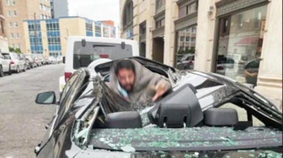 El hombre de 31 años se estrelló contra el techo del Beemer 330i negro estacionado en la calle del Journal Square a las 10:20 del miércoles pasado , luego se puso de pie con el brazo derecho colgando a su costado y preguntó: "¿Qué pasó?" La testigo Christina Smith, de 21 años, contó la increíble situación.